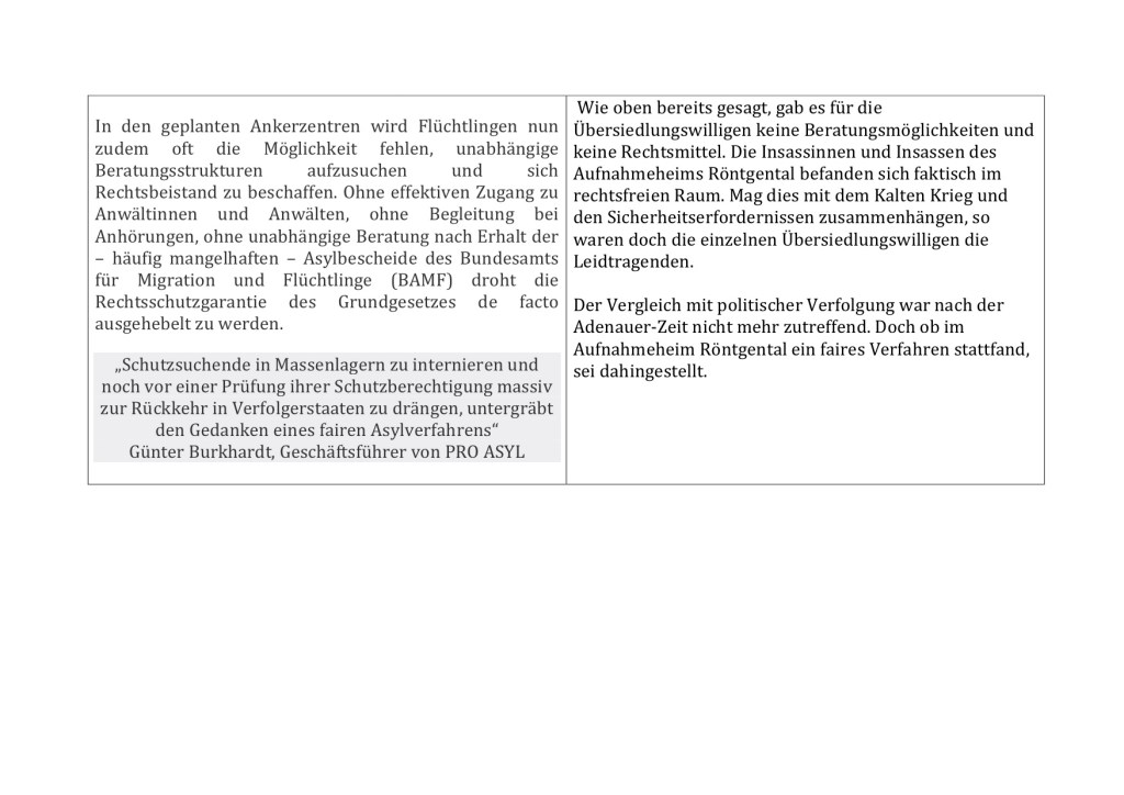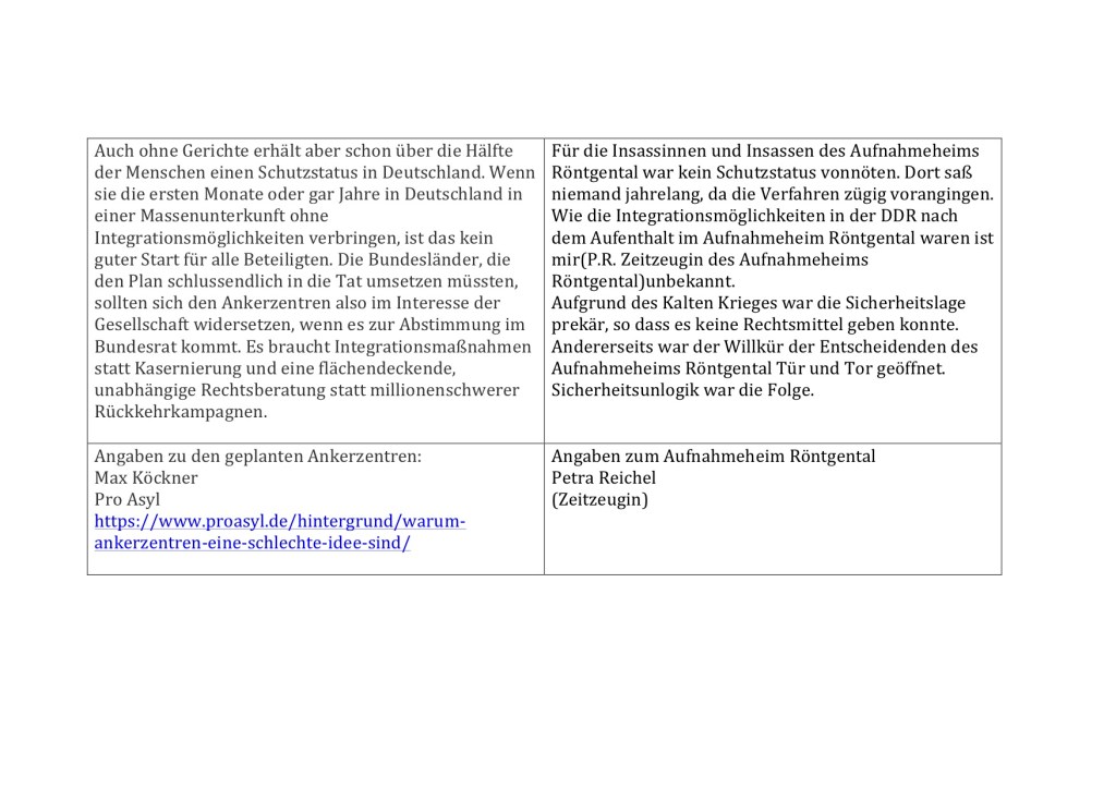Hier der Vergleich zwischen den geplanten Ankerzentren und dem Aufnahmeheim Röntgental, wo seinerzeit Menschen aus der BRD und Westberlin untergebracht wurden, die in die DDR übersiedeln wollten.